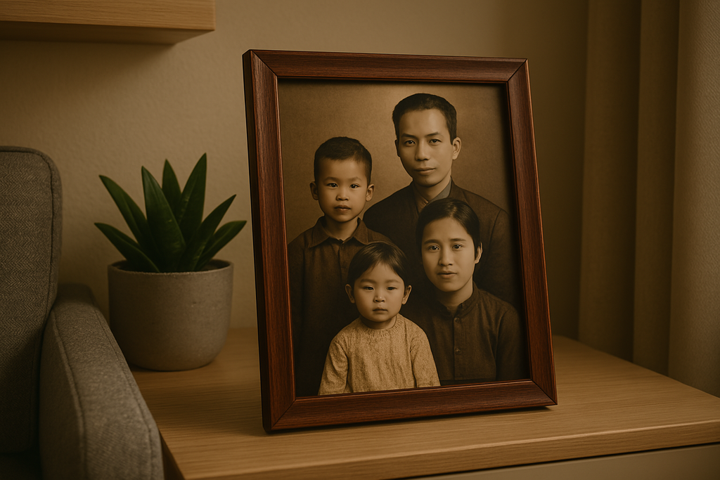- Ảnh in gia đình lồng khung.
